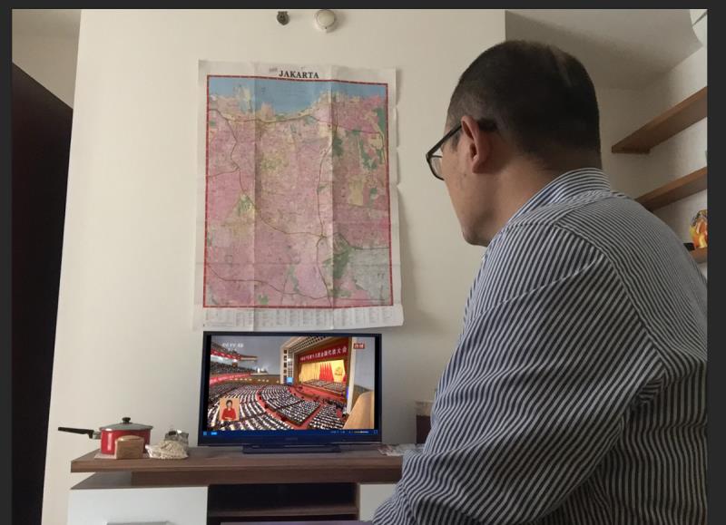 駐外項目的黨員群眾自發(fā)組織學習觀看十九大開幕式: