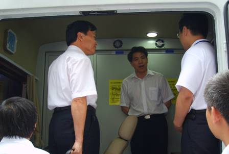 鄭局長在雷達(dá)車內(nèi)參觀檢查